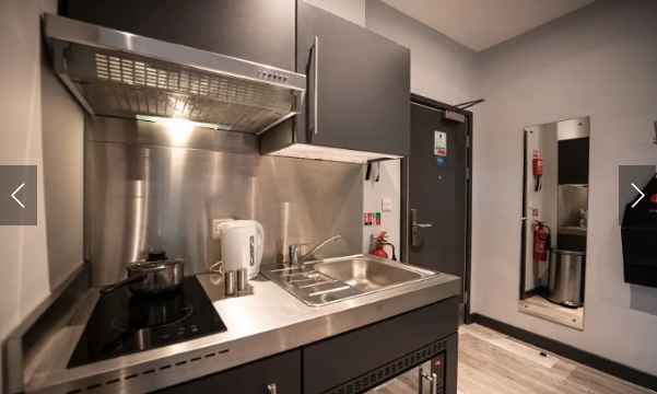 1. El apartamento ofrece dos tipos de habitaciones para estudiantes: Studio (con baño y cocina privados) y Ensuite (con baño privado y cocina compartida). Todas las habitaciones cuentan con cobertura WiFi completa y espacio suficiente para almacenamiento.