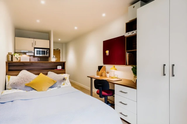 Central Studios Reading apartment opened in September 2014, offering Studio units, each equipped with high-quality furniture, a small double bed, and ample storage space. The apartment features an excellent communal lounge with a large-screen TV, table football, comfortable sofas, and two rooftop outdoor terraces, providing students with a comfortable living environment.