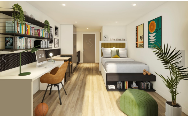 El edificio ofrece una variedad de suites para estudiantes. Independientemente de la opción elegida, todas cuentan con una decoración moderna, están completamente amuebladas, disponen de baño privado y ofrecen amplio espacio de almacenamiento. Además, cada suite incluye una cocina privada exclusiva, sin necesidad de compartir con otros estudiantes, ideal para quienes valoran mayor privacidad. También se ofrece la opción de estudio doble (Twin Studio), perfecta para parejas o amigos muy cercanos. Todas las cocinas están totalmente equipadas, con microondas, nevera y otros electrodomésticos.