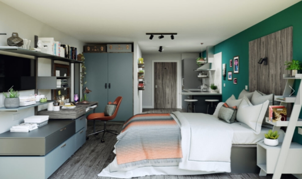 Este apartamento está situado al suroeste de la Universidad de Bristol; se tarda 8 minutos a pie en llegar a la universidad. Es un alojamiento estudiantil recién reformado en 2022 y comenzó a operar en septiembre de 2022. Todas las habitaciones del edificio están construidas según las especificaciones más altas y ofrecen diversas opciones de tipología: habitaciones compartidas con baño privado para 4-6 personas y distintos tipos de estudios. El edificio dispone de amplias zonas comunes, gimnasio y cine privado para el ocio y entretenimiento de los estudiantes.