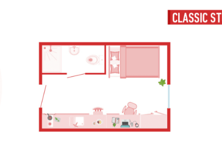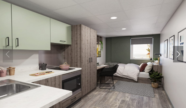 Crown Place ofrece una amplia variedad de tipos de alojamiento que seguramente satisfarán las necesidades de todos los estudiantes. Si desea socializar con otros estudiantes que comparten sus intereses, las habitaciones en grupo son ideales para hacer nuevos amigos y fomentar un sentido de comunidad. Para quienes prefieren una vida independiente, los espaciosos estudios individuales con cocina propia cumplen perfectamente con sus expectativas. Independientemente de la habitación que elija, contará con su propio frigorífico/congelador, lo que añade un toque de lujo.