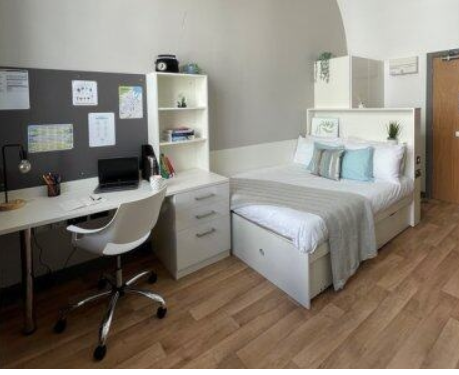 Cada habitación del edificio está equipada con cama, escritorio, armario y espacio de almacenamiento suficiente. A diferencia de las habitaciones Ensuite, los estudios individuales cuentan con su propia cocina privada, sin necesidad de compartir con otros estudiantes, ideal para quienes prefieren una vida independiente.