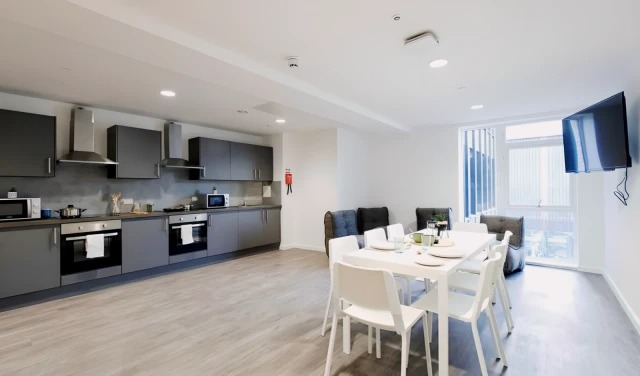 The Cavendish offers a range of stylish en-suite rooms and modern studios designed to give you the best student life possible. Each studio provides the privacy you need, featuring your own private en-suite bathroom, kitchen, and dining area. En-suite rooms are perfect for those who want a mix of independence and shared living, offering your own private en-suite bathroom with shared kitchen, dining, and living spaces. To make things even better, every room comes with Wi-Fi, ensuring you never miss those crucial deadlines (and Netflix releases!). There are communal areas for making friends, creating memories, and getting work done, as well as laundry facilities and landscaped courtyards.