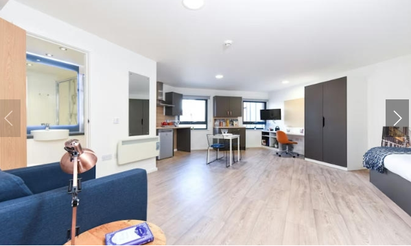 Todas las habitaciones del residencial presentan un diseño abierto y están equipadas con acabados modernos de alta calidad, ofreciéndote una sensación de hogar. Las habitaciones individuales con baño privado incluyen un amplio escritorio para estudiar y trabajar, una cama doble pequeña, espacio de almacenamiento y baño privado; la cocina y la sala de estar son espacios compartidos. Los estudios cuentan además con una pequeña cocina totalmente equipada y una barra de desayuno, de uso exclusivo y sin necesidad de compartir. No se aplica cargo adicional por ocupación doble en estudios.