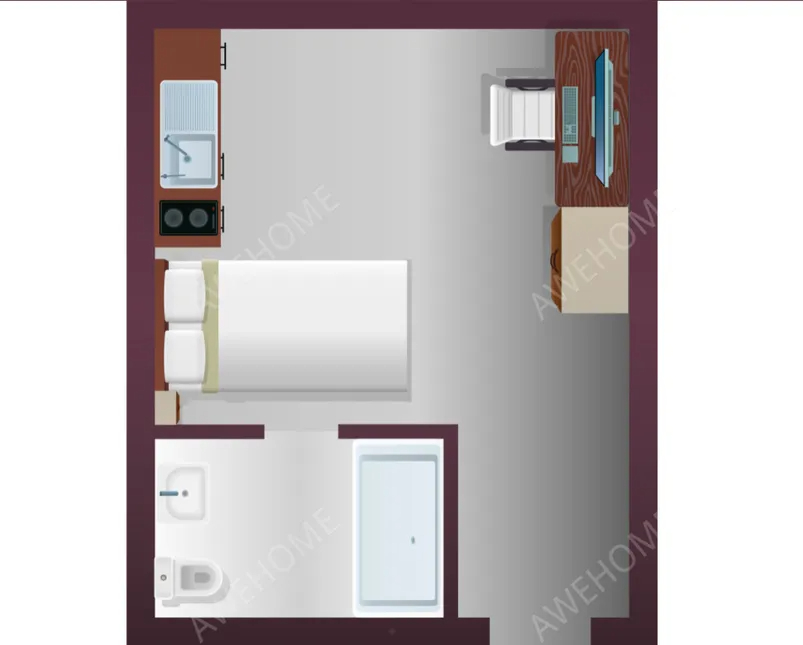 Información de la habitación: 18-20,7 m² (193,75-222,81 ft²), plantas 1-2, baño privado, cocina privada