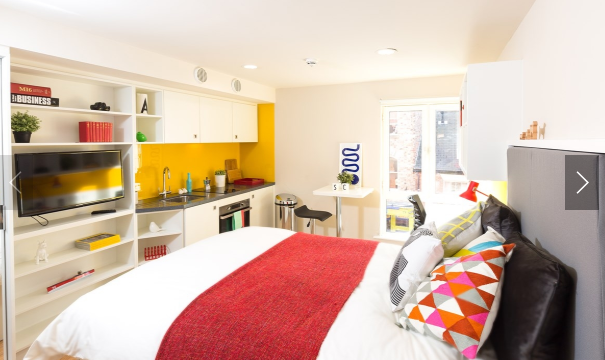 El apartamento ofrece una variedad de habitaciones tipo Ensuite (de 5 a 6 dormitorios) y estudios individuales, especialmente diseñados para estudiantes. Independientemente de la opción elegida, todas las habitaciones cuentan con una decoración moderna, muebles completos, baño privado y amplio espacio de almacenamiento. Las habitaciones Ensuite comparten una cocina común integral, mientras que los estudios incluyen su propia cocina privada, sin necesidad de compartirla con otros estudiantes: una opción ideal para quienes valoran mayor privacidad. Además, el apartamento también dispone de estudios gemelos (Twin Studio), donde una sola habitación cuenta con dos camas y un espacio vital compartido, perfecto para parejas o amigos muy cercanos. Todas las cocinas están completamente equipadas: microondas, neveras, etc., ¡así que puede dar rienda suelta a sus habilidades culinarias!