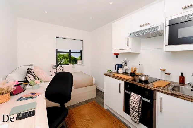 【Apartment Overview】Castle Hill Student Accommodation offers two room types: Studio and Ensuite. You can choose according to your needs as room sizes vary, and all units are fully equipped. The apartment features communal areas and study rooms, with facilities including TV, WiFi, and laundry equipment. Currently, the apartment only accepts students from the University of Cambridge and Anglia Ruskin University. 【Location & Surroundings】It takes 20 minutes on foot or 6 minutes by bike to reach the University of Cambridge from the apartment; Anglia Ruskin University is a 30-minute walk or approximately 12 minutes by bike away, making this an ideal choice for students. 【Security & Services】The apartment has a 24-hour electronic access control system and video surveillance. Visitors must pass through multiple electronic gates to enter. On-site facilities include a laundry room, gym, and bicycle storage, which are essential for getting around Cambridge.
