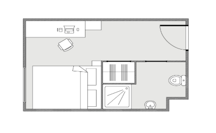 12.9–13.6㎡ private bathroom; Small Double bed (120×190 cm)