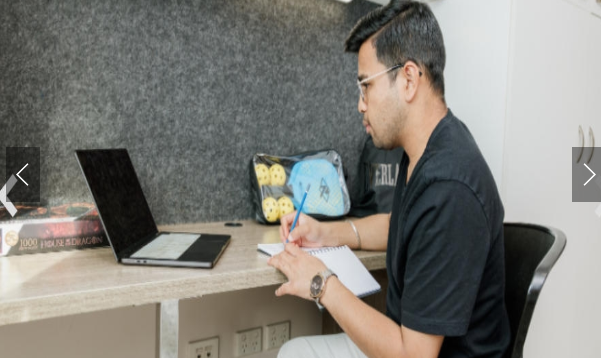 ▪ El residencial ofrece distintos tipos de alojamiento: estudios, apartamentos de dos dormitorios y de cuatro dormitorios, entre otros, para que elijas según tus necesidades. Todas las habitaciones cuentan con aire acondicionado y están completamente amuebladas: cama grande, colchón, armario y espacio de almacenamiento; además, incluyen utensilios de cocina y mesa y sillas. Cada habitación dispone de conexión Wi-Fi.