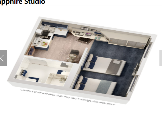 Nuestros lujosos apartamentos de servicio ofrecen la privacidad de un dormitorio independiente con baño privado, al tiempo que brindan oportunidades para interactuar con otros estudiantes. Cada apartamento incluye un baño privado, una cama doble, un área de estudio, un amplio armario y una smart TV. Además, los residentes de nuestros apartamentos pueden disfrutar exclusivamente del Luxe Lounge: un espacio elegante y dinámico diseñado para relajarse, socializar y entretenerse.